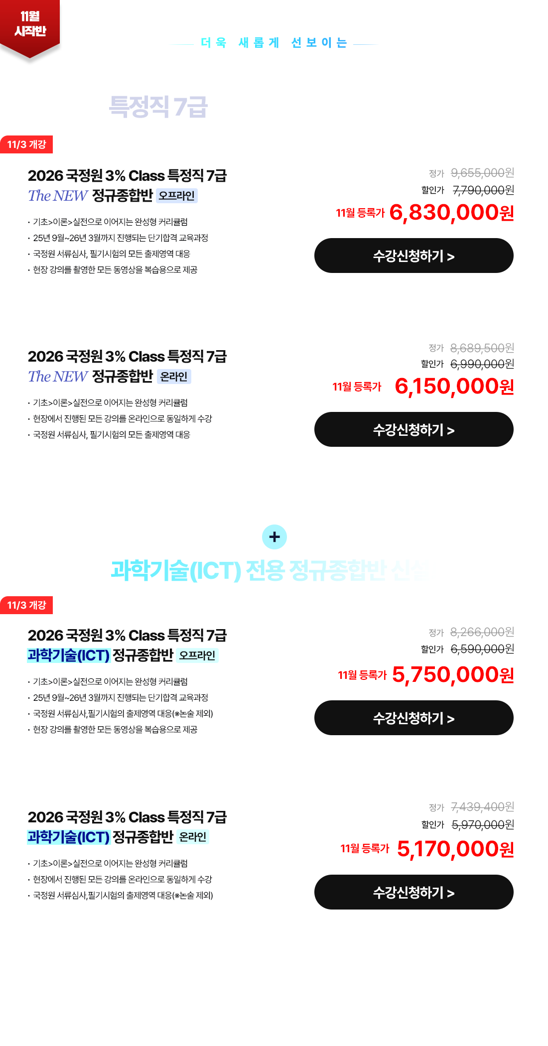 - 2026 국정원 3% Class 특정직 7급 과학기술(ICT) 전용 정규종합반(온라인)