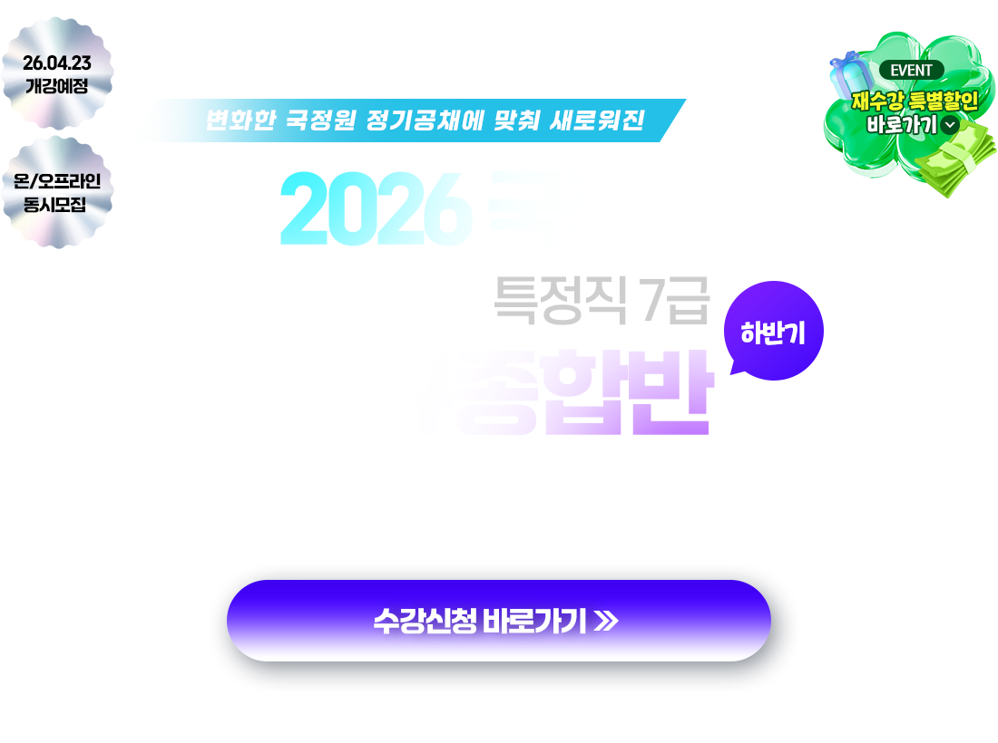 (단, 복습용 온라인 동영상 강의는 2026년 하반기 국정원 7급 공채 필기시험일까지 수강가능)
