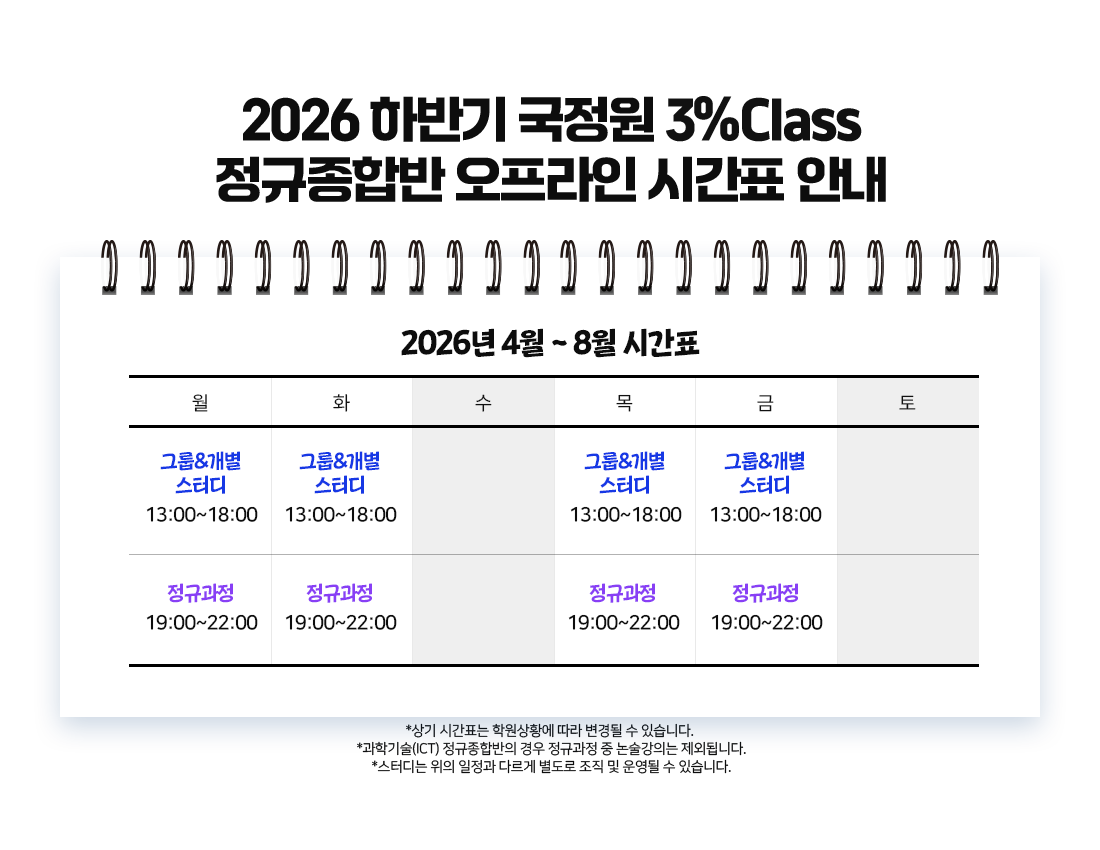 - 2026 하반기 국정원 3% Class 특정직 7급 과학기술(ICT)전용 정규종합반(오프라인)