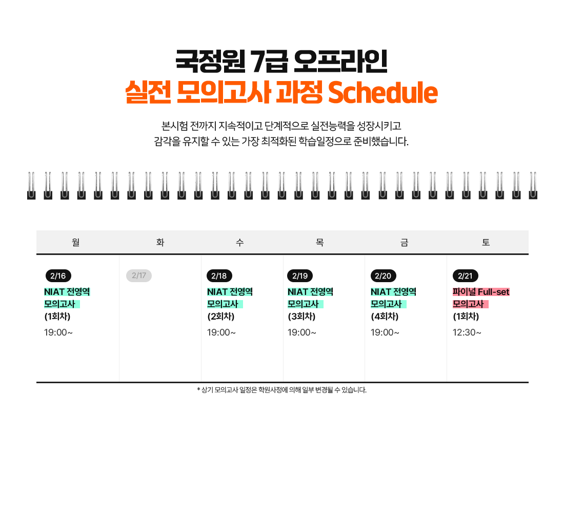 - 학원 상황에 따라 모의고사 관련 세부일정은 일부 변경될 수 있으며, 변경 시 결제자에 한하여 별도로 안내드릴 예정입니다.